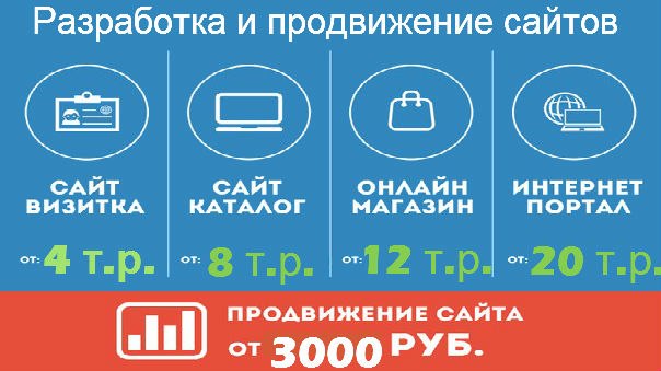При заказе сайта Вы получаете: - Доменное имя для сайта в подарок. - Хостинг на 1 год Бесплатно. - Установка счетчика статистики на Ваш сайт. - Регистрация Вашего сайта в поисковых системах Яндекс,Google, Mail.ru, Rambler. Продвижение сайта от 3000р. Наш сайт: Цена: 1.000 руб. Контакты: +7 (913) 047-26-45 Смотрите также: