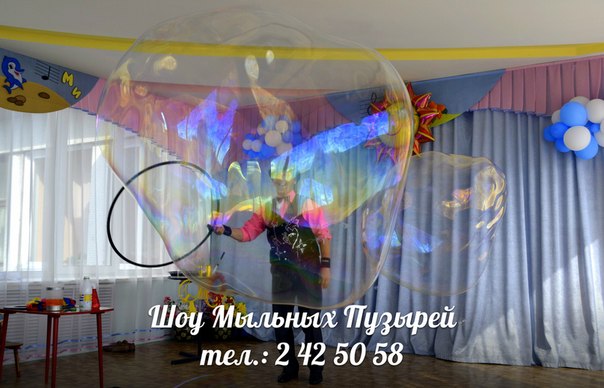 В программе шоу: Зрелищные трюки с пузырями всех размеров и форм, пузыри с дымом, огненные пузыри и мн.другое)) А в финале программы возможность побывать внутри огромного мыльного пузыря и даже сделать в нем фото на память! Контакты: +79029905058 |