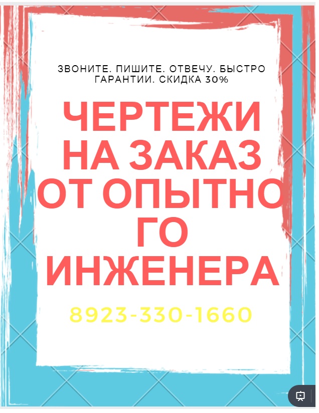 1.в Компасе,автокаде (Autocade),Visio,Solid Works 2.Проектирование/редактирование/доработка чертежей. Проектирование (в разных областях промышленности, производства, в разных отраслях,направлений, различной сложности) 3.Перевод с бумаги в электронный вид 4.10000 база чертежей.От нас не уйдете без чертежа 5.Чертежи для дипломов (на диплом),курсовых и др. Индивидуальный подход, точно в срок.В соответствие с вашими требованиями и требованиями ГОСТ, ЕСКД, СПДС. Работаем напрямую с клиентом или по почте. Работаем без посредников.Цена договорная. Мы ценим ваше время и , особенно когда идет сессия НАШ АДРЕСС в ИНТЕРНЕТЕ: ПОЧТА: solid000@yandex.ru НАШ ТЕЛЕФОН: +7923-330-1660 Цена: 1 руб. Контакты: http://chertezhi000.ru/ Смотрите также: