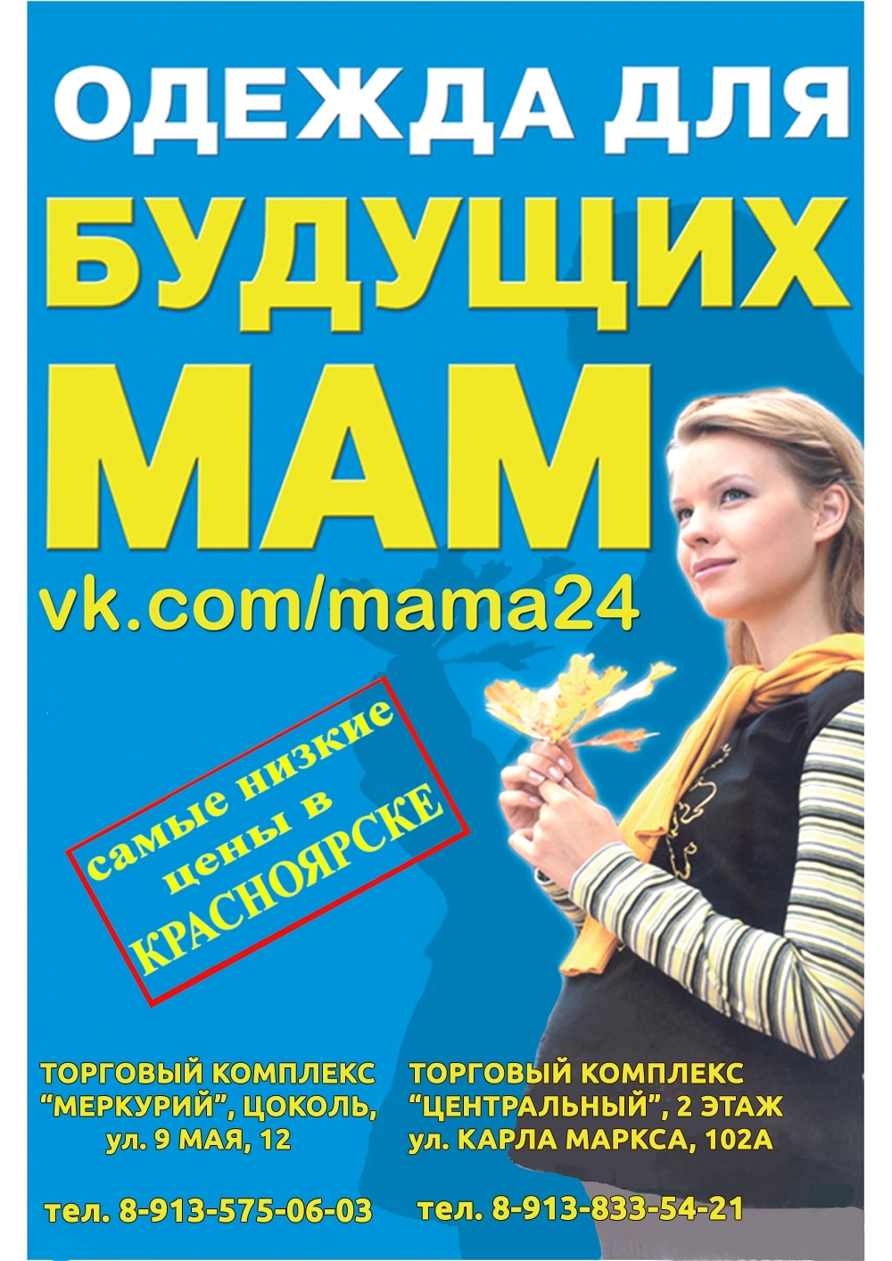 пн-вс, с 10.00 до 21.00 Красноярск, ул. 9 мая, 12, маг. Меркурий пн-вс, с 10.00 до 19.00 Красноярск, ул. Телевизорная, 1, стр. 4, ТЦ Изумрудный город пн-вс с 10 до 20 Сеть магазинов для беременных “Mamma Mia” рады предложить большой ассортимент одежды и белья для беременных и кормящих мам, полный ассортимент товаров для роддома (сумки в роддом, прокладки для рожениц Canpol, Bella mama, Absorgyn, Seni, Honey Pot, Cottons, Molimed, Natracare, трусики-шортики для прокладок San Seni, Maternity Fix Pants, вкладыши в бюстгальтер для кормящих мам Lovular, Medela, Avent, Baby Go, Roxy, Chicco, Johnson’s, Euromama, пеленки одноразовые, фланелевые, ситцевые, муслиновые, одежда для новорожденных, подгузники для новорожденных Huggies, Pampers, Moony, Merries, Lovular, крем для сосков Purelan, бандажи до-, послеродовые, подушки для беременных, одноразовые бритвенные наборы, компактные зубные наборы Splat, Silcamed, влажные салфетки без липкости, без запаха Lovular, влажная туалетная бумага Zewa, Mon Rulon, одноразовые туалетные покрытия, готовые наборы для роддома, готовые сумки в роддом для малыша, моющиеся тапочки, шлепанцы для роддома, компрессионные антиэмболические чулки на роды 1, 2 класс компрессии) Цена: 1.000 руб. Контакты: +79135750603 Смотрите также: