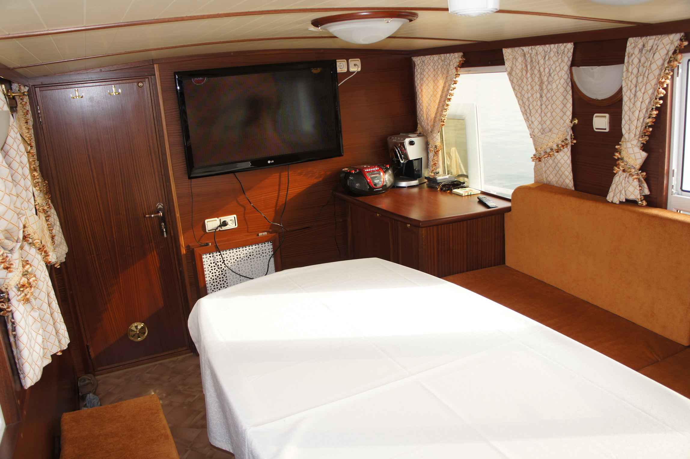 Капитальный ремонт корпуса в 2010 : толщина обшивки: днище 10 мм, борт 8-6 мм. Длина –максимальная 25 м Ширина –максимальная 4 м. Вес 55тонн, балласт 55 т. Скорость 17 км/ч (крейсер) ДВС: ЯМЗ-238 2010 год. Запас ДТ 3850 л Количество топливных баков-5 Дизель генератор 16 квт. 220-380 v SDMO (Франция) Инвертор 24-220v-1 шт. АКБ-6 шт. 180 А4 Расход ДВС+д/генератор+котел отопления 29-32л/час Дальность хода 2000 км. Отопление: 2 котла. Жидкотопливный, автоматический, «Кетурами»1300 (Корея) 13 кВт, электрический 20ТА 15 кВт Береговое питание 220-380 V Навигационное оборудование: Навигация Furuno NAV net (72 rv) GPS, монитор 19 d, эхолот. Связь УКВ (ближняя) КВ (дальняя). Кол-во кают-7 . Спальных мест 12 +4(экипаж). Максимальное количество спальных мест-19. Всесезонное отопление , водоснабжение (без ограничений расхода воды). Гальюн -4шт +душ. Русская баня HARVIA с душем и выходом к воде. Кают-компания 10,9 кв.м. с круговым обзором. Комплект мягкой и жесткой палубной мебели. Палубный бар. TV 3 ЖК, DVD, караоке, вывод навигационной информации на экран кают-компании, музыка с выводом на палубу(морские, водозащищенные динамики 2х200 Вт) Камбуз расположен отдельно. Холодильники -2 шт.(400л, 150 л), морозильная камера 200л, СВЧ, электрогазовая плита, электрическая духовка комплект посуды -2 шт. Стиральная машина «Samsung»-5 кг Вся мебель и оборудование встроенные, с учетом штормовых условий. Внутрисудовая связь-трансляция двухсторонняя. Судовое противоскользящее покрытие палубы. Электроякорное устройство 24V 3 квт, 2 якоря по 100кг. ПСН-20 чел+комплект спасательных жилетов. Лодка «Кайман» 360 RIB Al днише. 5 ел с ДУ управлением, двигатель «Ямаха» 30 л/с Кран-балка (спуск+подъем лодки) UNIC(Япония) электрогидравлическая 180 гр-1т Бортовое питание 12-24-220-380V+аварийное освещение Откидная водолазная площадка (аппарель). Отдых экипажа, повара, пассажиров устроен отдельно. Возможность обеспечения стоянки судна в г Иркутске (Чертугеевский залив) с обеспечением охраны и берегового питания. Судно выставлено на продажу в полной комплектации для обеспечения передвижения и отдыха пассажиров и экипажа. Идеальный вариант корпоративного судна. Дополнительная информация: Смотрите также: