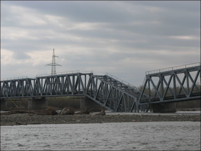 Военные к 28 мая возведут временную переправу вместо рухнувшего в реку Абакан железнодорожного моста. В настоящее время в работах задействован личный состав подразделений пятой отдельной железнодорожной бригады, дислоцируемой в столице Хакасии, а также работники нескольких подрядных организаций республики. Задача, которую предстоит решить военнослужащим, дорожникам и строителям — возвести временную переправу через реку за 16 дней, сообщили в пресс-службе правительства Хакасии. В настоящее время завершается расчистка от растительности того участка, где будет организован железнодорожный подъезд к временному мосту. Ведётся сооружение насыпи для прокладки железнодорожного полотна. Также начата поэтапная доставка на берег элементов быстровозводимого моста РЭМ — 500 и их монтаж.Параллельно начаты изыскательские работы по восстановлению разрушенного моста, а также ведутся обследования опор и элементов моста. После их завершения будет подготовлено обоснованное проектное решение по реконструкции переправы. О нём станет известно в первых числах июня. Собственником разрушенного моста является ОАО «Отделение временной эксплуатации» (Саяногорск), который и будет финансировать работы. Кроме того, было решено начать проработку вопроса строительства резервной железнодорожной ветки до Саяногорска, которая свяжет Саяногорский и Хакасский алюминиевые заводы, Саяно-Шушенскую ГЭС, угольные разрезы транспортным путем от станции Подсинее в обход моста. «Прокладка резервного маршрута имеет стратегическое значение, он позволит повысить транспортную и промышленную безопасности региона и крупнейших предприятий», — сказали в правительстве республики. Источник: Интернет-газета